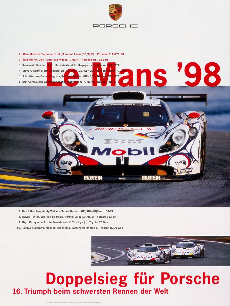 The Company celebrates its 50th birthday as a manufacturer of Porsche cars. At the 24 Hours of Le Mans – the classic French long-distance event – a Porsche 911 GT1 fitted with a carbon-fibre chassis sees off tough competition to bring a double victory and the 16th overall win for Porsche home to Zuffenhausen. against the toughest competitors.